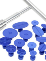 Metalen uitdeuker voor uitdeuken van auto, boot of caravan. Met trekker met 18 blauwe lijmtabs.